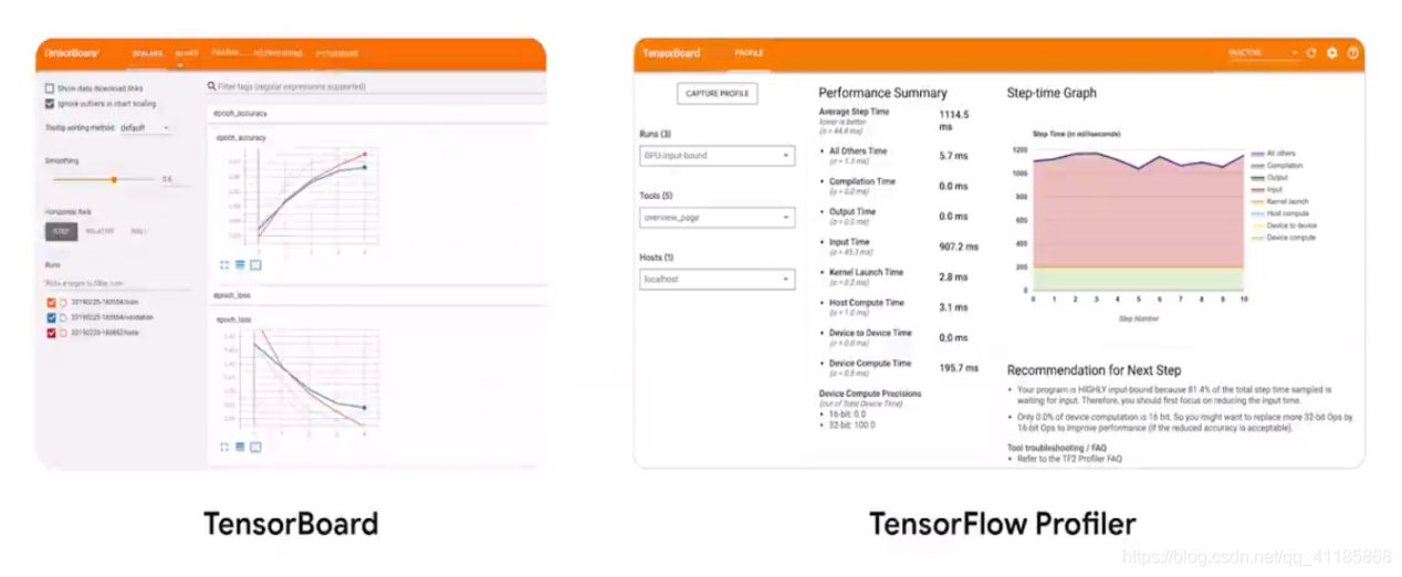 分析模型的工具主要有两个,分别是 TensorBoard 和 TensorFlow Profiler。TensorBoard 是理解实验的可视化工具包,可跟踪度量、可视化模型,探索模型参数、嵌入等等。TensorFlow Profiler 主要是分析 TensorFlow 代码的执行情况。