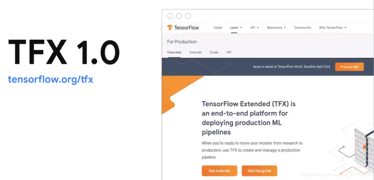 TFX 1.0,是企业级正式版 ML。它适合在企业规模上生产 ML。Google 创建 TFX 的原因在于我们需要针对 ML 产品和服务构建强大的框架,然后将其开源,以供其他人使用。其中包括对训练模型的支持,相关模型可用于移动应用和 Web 应用,以及基于服务器的应用。与许多合作伙伴成功推出 Beta 版后,Google宣布推出 TFX 1.0,已为企业级正式版 ML 做好准备。