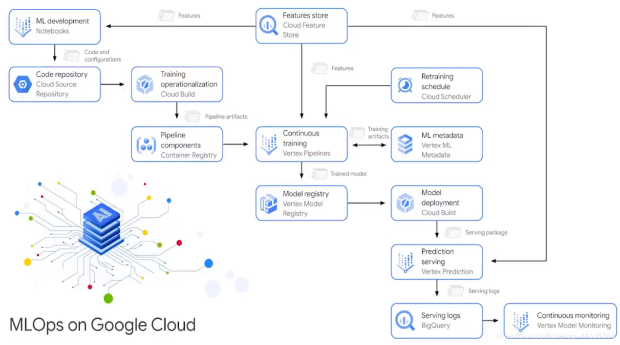 这里特别强调Vertex AI引入的新的 MLOps 功能,可以使用这个套件放心的管理模型,这套工具消除了复杂的用户自定义模型维护的复杂性,提高了可靠性和可重复性,并且可以团队式的跟踪和管理实验。它还可以监视特征质量,并避免导致训练服务偏斜的常见原因(比如数据分布倾斜),从而实现可靠的 ML 生产部署。