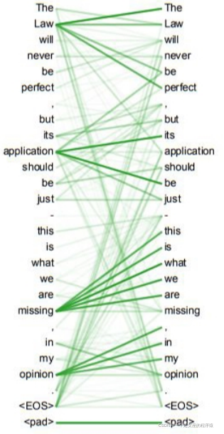 (4) 模型更可解释:self-attention模型更可解释,attention结果的分布表明了该模型学习到了一些语法和语义信息。