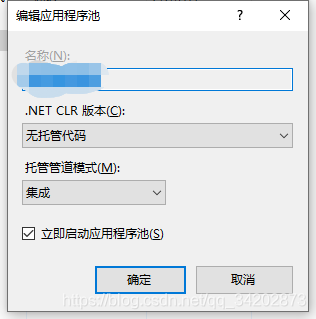 - 在“编辑应用程序池”窗口中,将“.NET CLR 版本”设置为“无托管代码”: