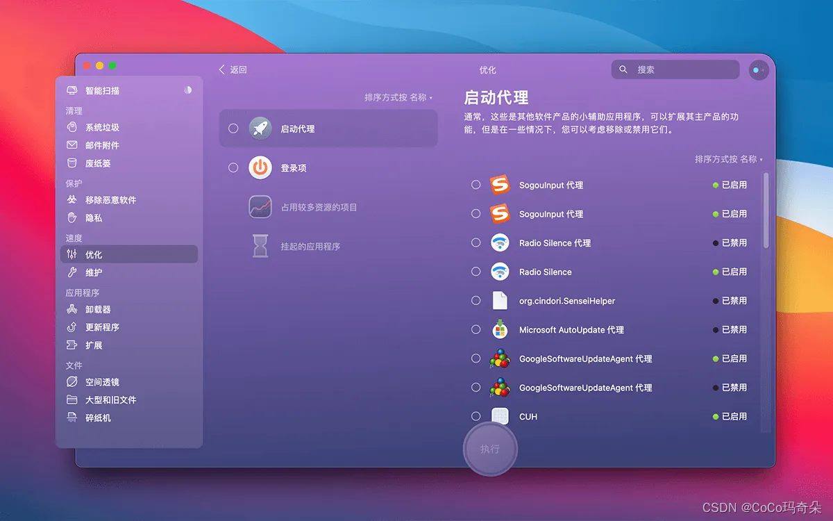一个模块,可让您管理登录项,启动代理,挂起和资源消耗的应用程序。提高系统的速度和响应能力。
