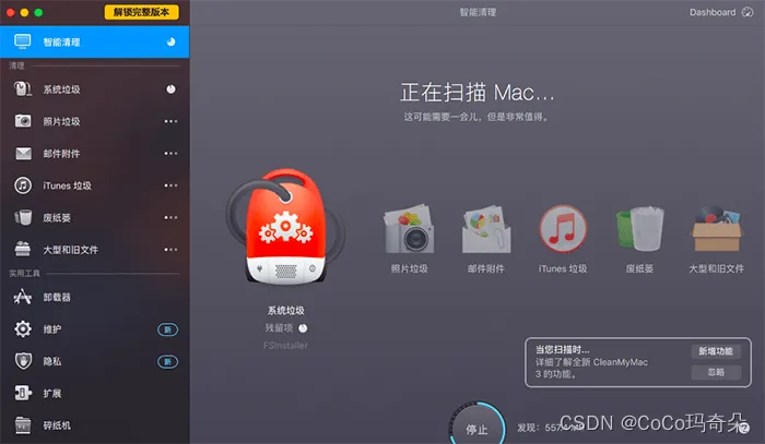 即使新功能处于测试阶段,您也可以开始使用它,它非常有用并且非常美观。自己测试了一下感觉清理速度要比CleanMyMac 3 快很多,大家可以先行下载体验一下。CleanMyMac X 是集多功能一体化的软件包,可以让您的Mac更加出众。它可以清除百万吨垃圾,让您的计算机运行得更快,就像一台全新的Mac一样。