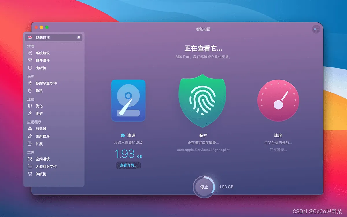 智能扫描:用于分析和优化Mac的一体化中心。它包括清理,保护和速度扫描仪,只需单击即可启动。