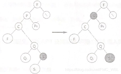 2)用结点P的直接前驱(或直接后继)来代替结点p ,同时在二叉排序树中对其直接前驱(或直接后继)做删除操作。为使用直接前驱代替结点p: