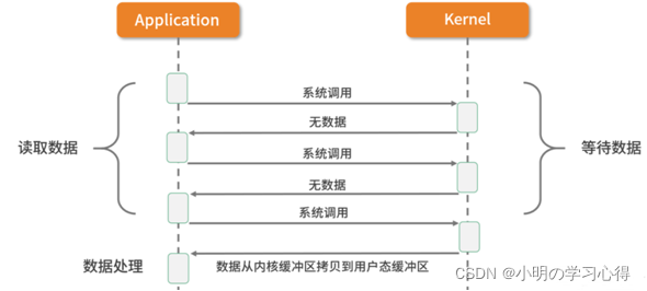 NIO:非阻塞IO通过进程反复调用IO函数(多次系统调用,并马上返回);在数据拷贝的过程中,进程是阻塞的;