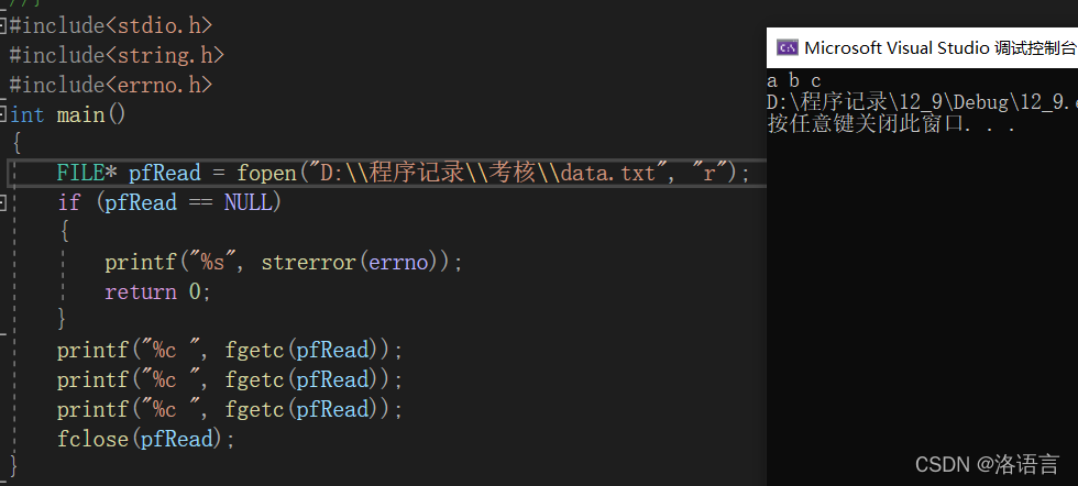 上述程序中采用了绝对路径的方式打开文件,打开的是该路径下的文件。如果这里只写text.txt则只会在该程序文件的路径下找文件。