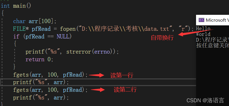 C 库函数 char *fgets(char *str, int n, FILE *stream) 从指定的流 stream 读取一行,并把它存储在 str 所指向的字符串内。当读取 (n-1) 个字符时,或者读取到换行符时,或者到达文件末尾时,它会停止,具体视情况而定。