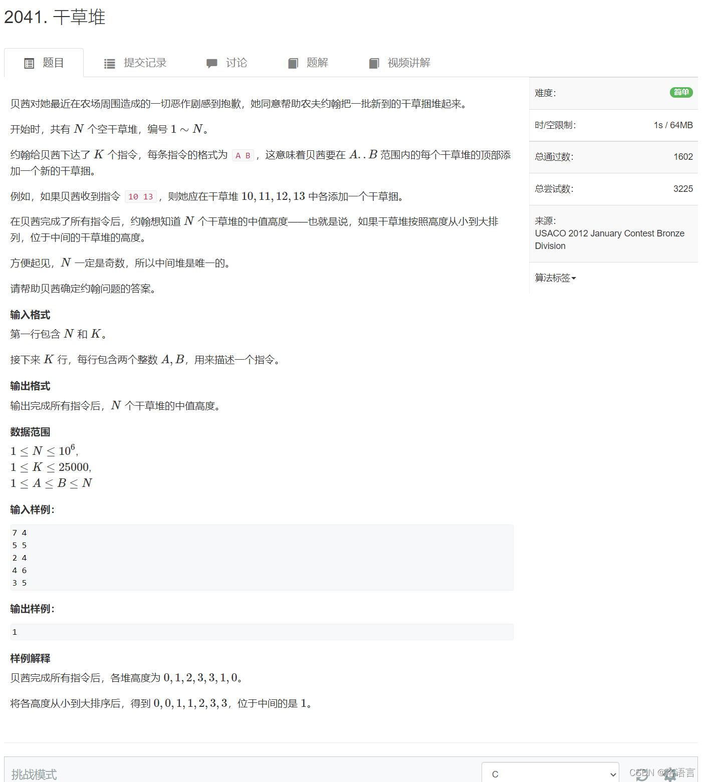 原题链接:2041. 干草堆 - AcWing题库
