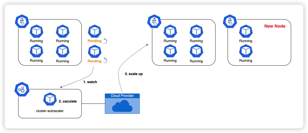 集群自动弹性伸缩(cluster-autoscaler) 是一个可以自动扩缩 Kubernetes 集群规模的工具,独立于 Kubernetes 主代码仓库以外,与 VPA、Addon-Resizer 等组件共同维护在 kubernetes/autoscaler 仓库,并且各云厂商贡献了对标准扩展接口(CloudProvider)的实现。