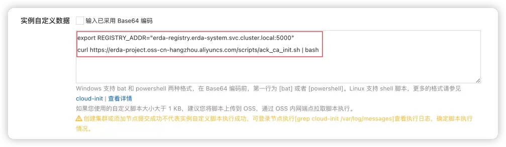exportREGISTRY_ADDR="erda-registry.erda-system.svc.cluster.local:5000"curl https://erda-project.oss-cn-hangzhou.aliyuncs.com/scripts/ack_ca_init.sh | bash