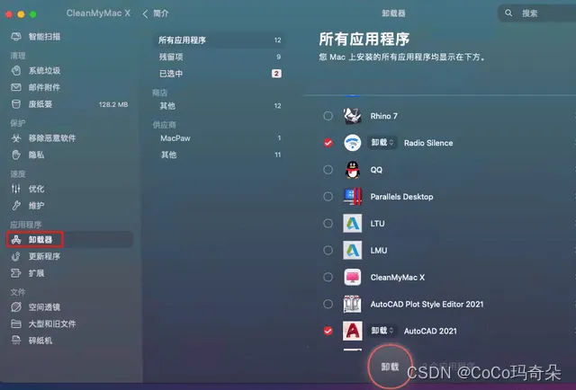 在Windows里,可以通过控制面板的“程序和功能”来删除安装的软件。但在MacOs里,似乎只能从应用程序中,右键软件移除到废纸篓来删除软件,对于有强迫症的小伙伴来说,总是感觉这样清理似乎并不干净。而CleanMyMac X的卸载器还支持mac卸载软件,能够有效管理和卸载mac中的应用,删除软件遗留下的文件比如偏好、缓存等,还可以识别破碎和过时的应用程序。这是我使用过程中最喜欢的一项功能了。