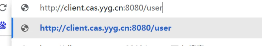我们直接在浏览器中输入http://client.cas.yyg.cn:8080/user地址,这个地址是我们CAS Client客户端项目中定义的测试接口,必须具有user角色权限才能访问,未登录时是不能直接访问的。