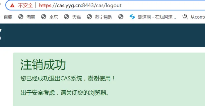 这时候我们可以通过请求https://cas.yyg.cn:8443/cas/logout地址,来执行单点注销,这样当一个CAS客户端项目退出后,CAS Server中其他所有的客户端也都注销了。