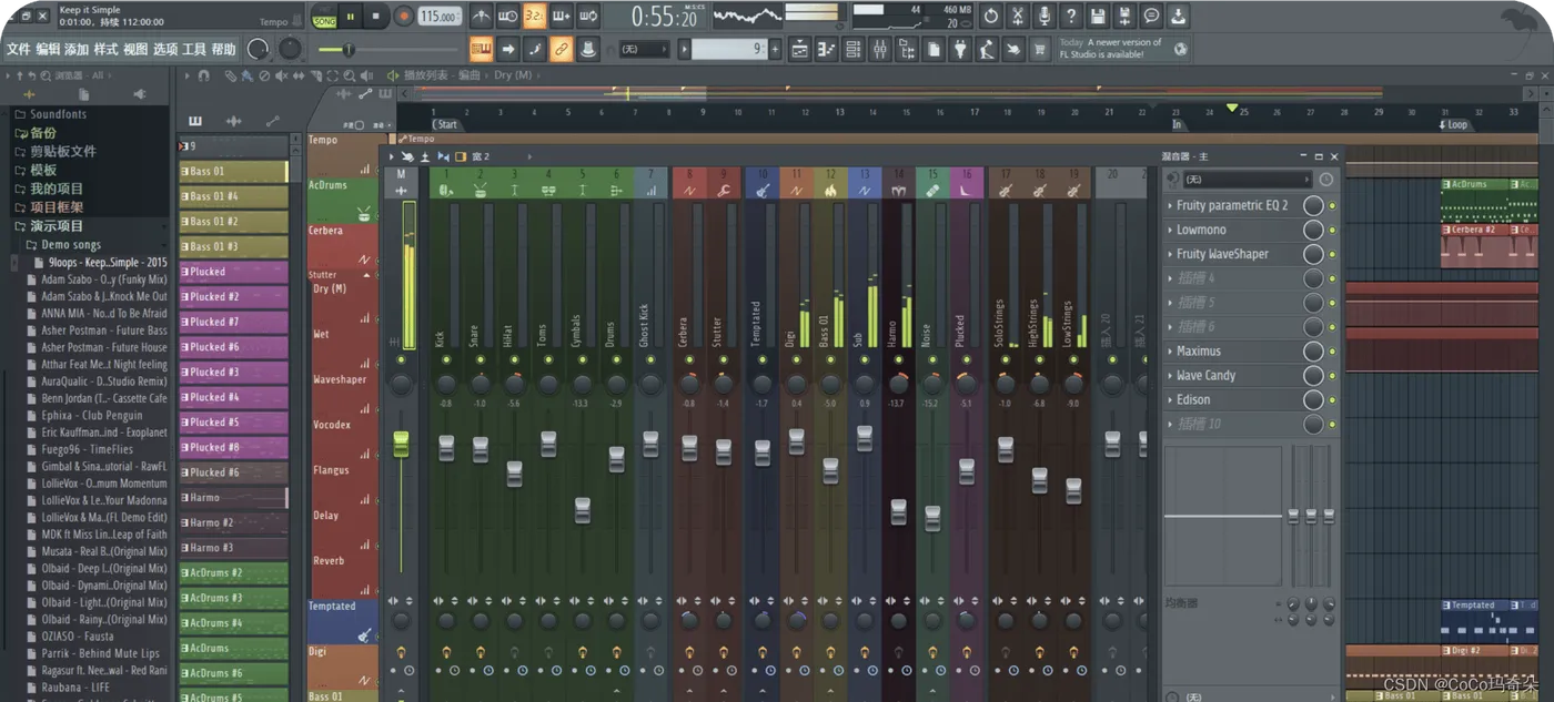 FL Studio拥有强大的采样引擎,自带高品质打击乐、钢琴、弦乐、吉他等107种乐器效果。内置各种迷人的插件多达25款,包括经典电子音色