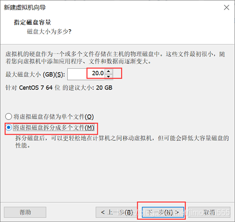 6.磁盘20G 将虚拟机磁盘拆分成多个文件