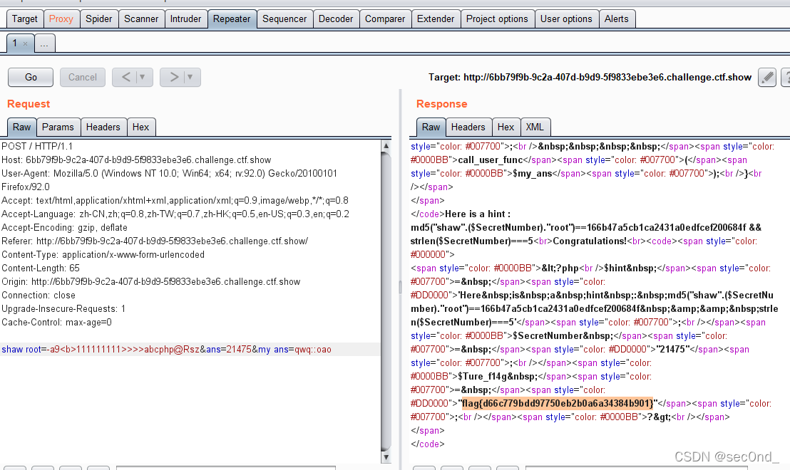 传入后得到hint,接下来通过爆破得到了secretnumber是21475