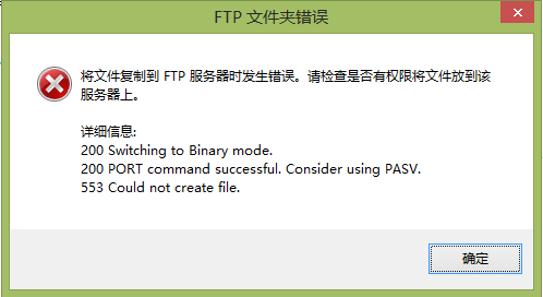 ftp打开后,无法传送文件,无权限。