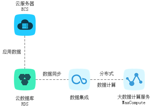 通过数据集成服务,可将RDS数据导入MaxCompute,实现大规模的数据计算,如下图所示。