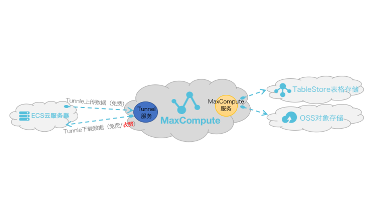 MaxCompute Tunnel 服务的连接地址:上传、下载数据的能力是通过 MaxCompute Tunnel 服务提供的。当您想通过 Tunnel 上传、下载数据时,可以通过 Tunnel 提供的链接地址发起请求。