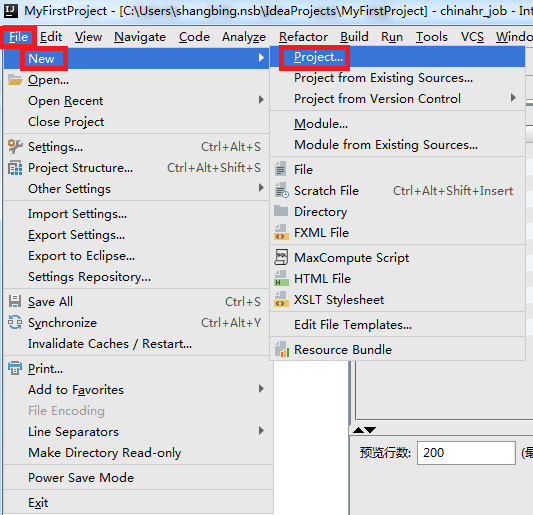 新建Project:通过IntelliJ IDEA中的MaxCompute Studio插件来创建一个新的Module,这一步骤帮助您初始化一个适合MaxCompute脚本开发的环境。填写Project Name时,建议采用有意义的命名规则,便于后期管理和识别。