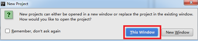 如果之前有打开的 Project,将会提示您是否在当前窗口中打开(即关掉之前的 Project),选择 This Window。