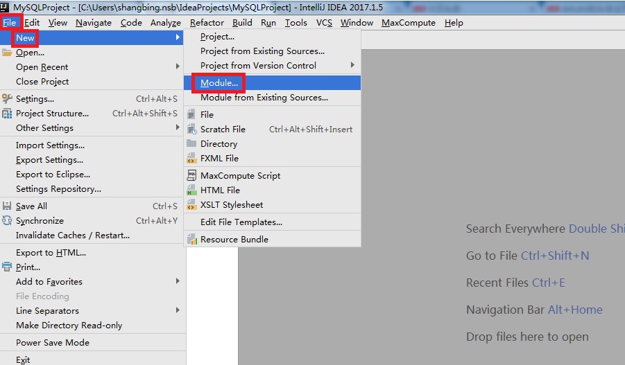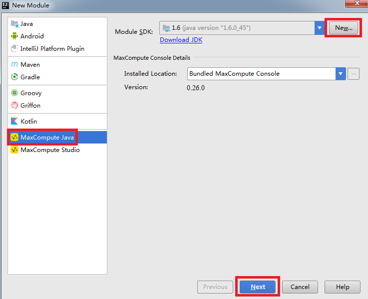 MaxCompute Studio 支持开发 Java UDF 和 MR,首先需要新建一个 MaxCompute Java Module。