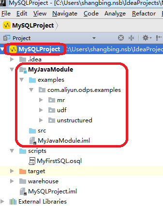 warehouse: 这个目录主要用于存放本地运行时所需的schema定义和数据文件。在开发和测试阶段,你可能需要模拟一些数据来验证你的UDF或MR逻辑是否正确。这个目录就用来存放这些测试数据和表结构定义,使得你可以在本地环境中模拟MaxCompute的运行环境,进行单元测试或简单的功能验证,而不需要频繁地上传到云端进行测试。