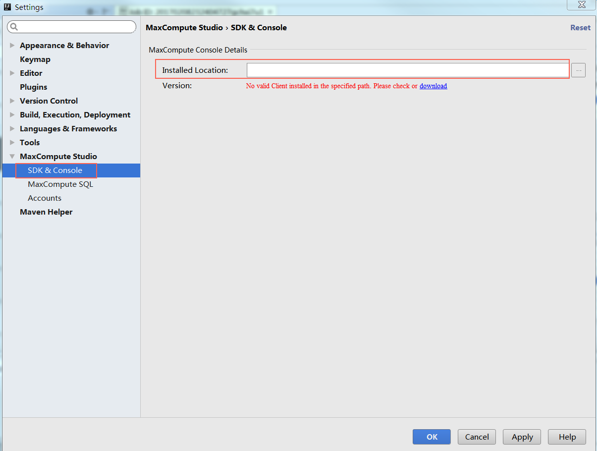 修改客户端SDK路径:在MaxCompute Studio的配置页面中,您会看到SDK