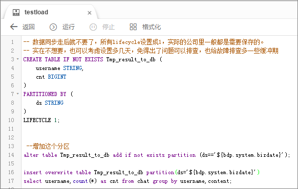 - * 运行SQL,把查询结果保存成临时表,方便后面用Tunnel下载