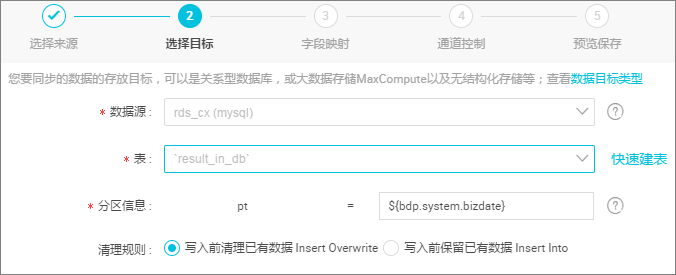 SQL 这里的创建表要先执行一次再去配置同步(否则表都没有,同步任务没办法配置)。