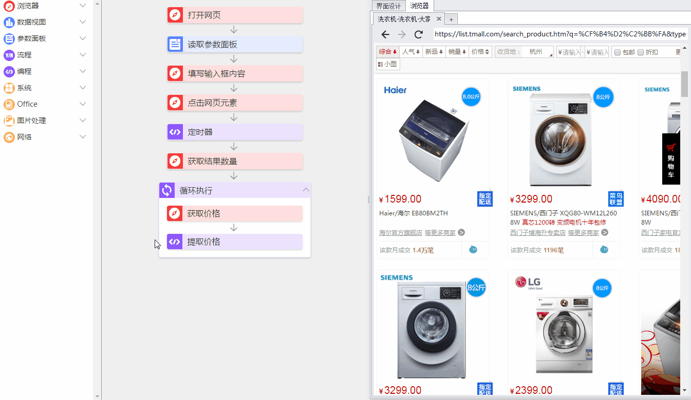循环主要用于处理一些重复性的动作,判断主要用于根据不同的条件执行不同的动作下面我们将模拟一个实际的业务场景:将所有洗衣机价格大于2000元的商品保存到数据视图