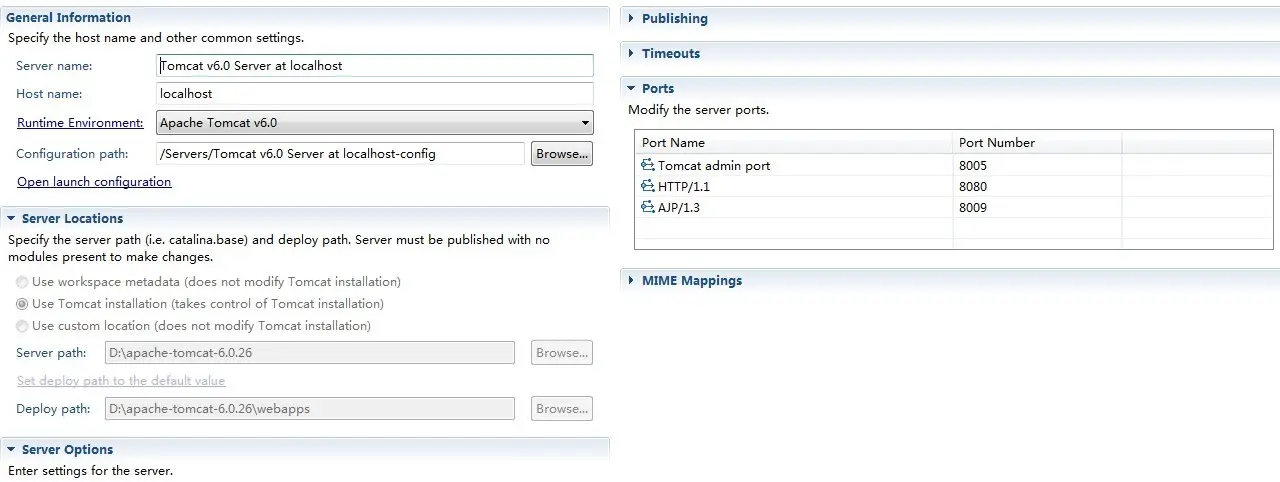 <Context path="/showcase" docBase="F:\talkweb\showcase\target\showcase-3.3.4" debug="0" reloadable="true" />同时必须把server.xml文件设为只读属性,因为启动eclipse下的tomcat时,eclipse都会去修改这个server.xml文件,不知 大家有没有遇到这个问题? 大家又是如何部署web工程到tomcat下去的呢? 我的eclipse版本:3.6 for j2ee ,tomcat6.0.26 以下是eclipse下tomcat的截图: