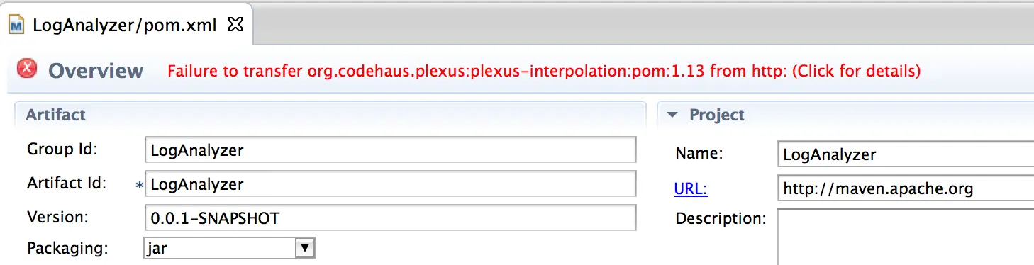 Failure to transfer org.codehaus.plexus:plexus-interpolation:pom:1.13 from http://repo.maven.apache.org/maven2 was cached in the local repository, resolution will not be reattempted until the update interval of central has elapsed or updates are forced. Original error: Could not transfer artifact org.codehaus.plexus:plexus-interpolation:pom:1.13 from/to central (http://repo.maven.apache.org/maven2): The operation was cancelled.