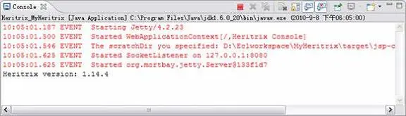 至此我们的 MyHeritrix 工程已经可以运行起来了。下面我们来看看如何启动 Heritrix 并设置一个具体的抓取任务。