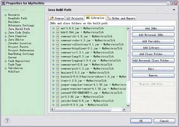首先在 Eclipse 中新建 Java 工程 MyHeritrix。然后利用下载的源代码包根据以下步骤来配置这个工程。