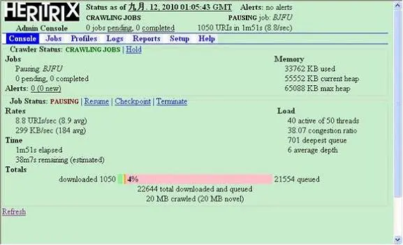 开源爬虫: Heritrix 1.14.4 安装/使用