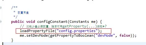 public void configPlugin(Plugins me) { //--装载数据库连接池插件-- // 配置C3p0数据库连接池插件 C3p0Plugin c3p0Plugin = new C3p0Plugin(PropKit.get("jdbc.url"), PropKit.get("jdbc.username"), PropKit.get("jdbc.password").trim()); //配置数据库驱动,MySQL可不用设置 c3p0Plugin.setDriverClass(PropKit.get("jdbc.driverClassName")); me.add(c3p0Plugin);