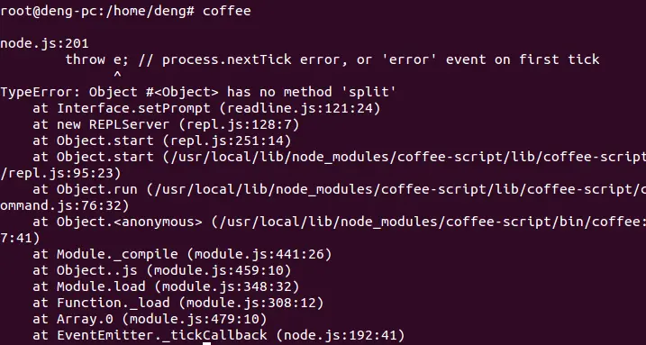 在terminal界面运行 coffee 命令,出现一大堆错.....
