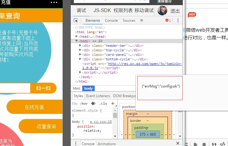 请各位大神个问题,做了个微信扫一扫,在微信web开发者工具中显示配置正常,但在我手机上总是签名错误。自己把所生成的签名和在微信jssdk中进行对比,也是一样。但总是在手机端出错。调试了好几天,也不知道哪里出错了。