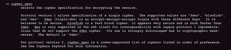 查看ssh manual可了解-c参数详情,如下所示:
