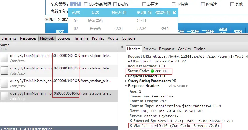 从这处图中,我们可以看到 12306使用的java jboss开发,并且此动态请求穿透了cdn节点(没有设置任何缓存header)。