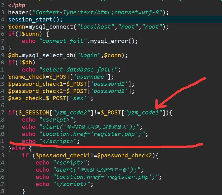 每次检测验证码填写是否正确,都会进入if部分,而else部分(红线一下),就算验证码正确,也进不去