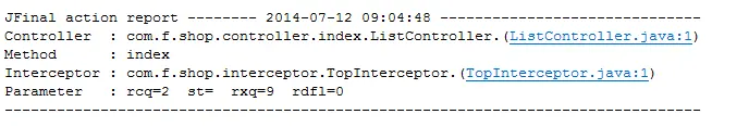 这个是 用 system.out 输出的; 请看 com.jfinal.core.ActionReporter的 doReport 方法. 你 记录这个有什么意义?######不然 log4j 应该记录些什么?难道只记录异常?不记录发生异常的过程?######