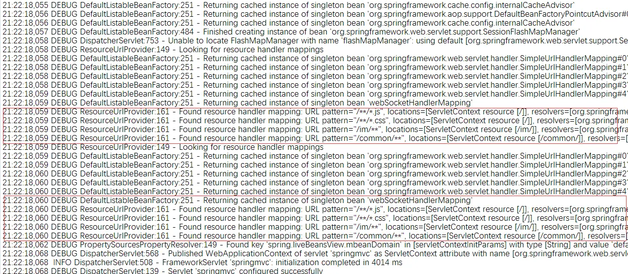 把你的静态资源组织放在同一个父目录里,一句话搞定就行, ######回复 @GONETHEN : 我这是代码配置,你是xml配置,同样的道理,因为你配置了 / 而其他filter也拦截 / 所以导致重复拦截,你把静态url拦截的 路径和普通的分开######那么请问这段代码应该放在哪个类里? registry又是什么东东? 我先自己查一查,还请明示######这配置 没什么毛病啊。你要问什么?是不是 PermissionInterceptor 拦截了你的静态资源? mvc:mapping path=/** , 额外添加需排除的资源路径 mvc:exclude-mapping path=######回复 @GONETHEN : spring mvc:resources 只是资源处理,并不是说用了它之后就不需要管了,尤其在自定义 Interceptor ,filter 的时候 要判断是否是资源请求。另外 如果你用 nginx 代理了静态资源,那可以不用再需要在 springMVC 中处理。。######不止PermissionInterceptor拦截了 还有sessionFilter也过滤了###### http://docs.spring.io/spring/docs/current/spring-framework-reference/htmlsingle/#mvc-caching-static-resources 说明了只是进行了缓存,并没有说明不拦截 ######好吧,谢谢大神指点