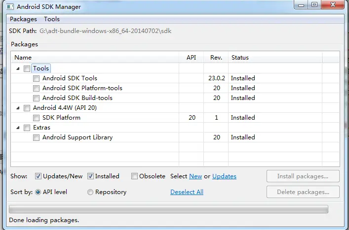 从http://wear.techbrood.com/sdk/index.html下载下来的Eclipse ADT解压运行android sdk manager后只有这几项。