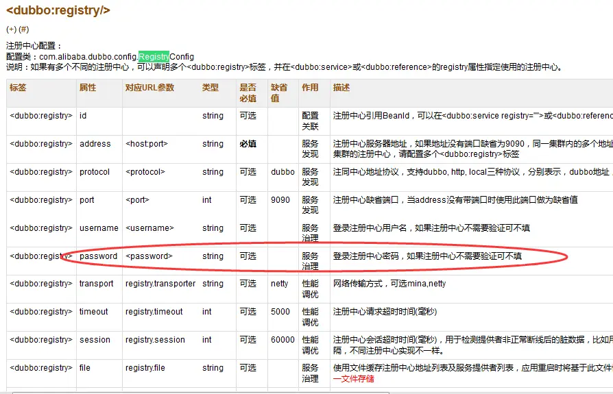 <dubbo:registry address="${dubbo.registry.address}" username="root" password="XXXXXX"/>