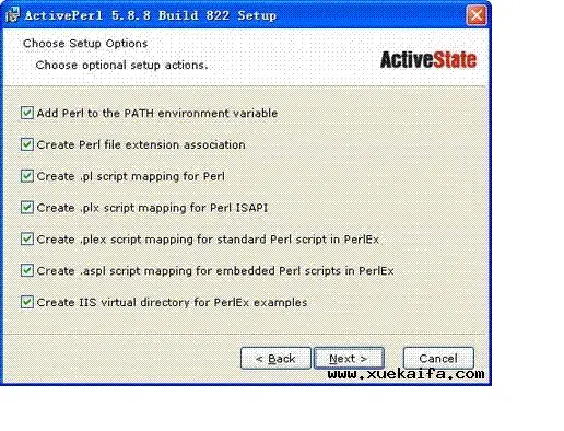双击activeperl安装界面,一直点击next直至完成安装,activeperl的选项都是默认的选项,依照默认安装。如果只能选择前两项,后面几项是灰色不可选状态,请不要奇怪,认真核实你的系统是否真的安装了IIS