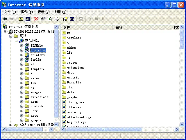 将bugzilla安装包解压,由于使用的是bugzilla4.2版本所以将解压后的bugzilla-4.2文件夹拷贝到c盘根目录下。然后配置IIS服务,IIS服务的配置请看第五节配置IIS